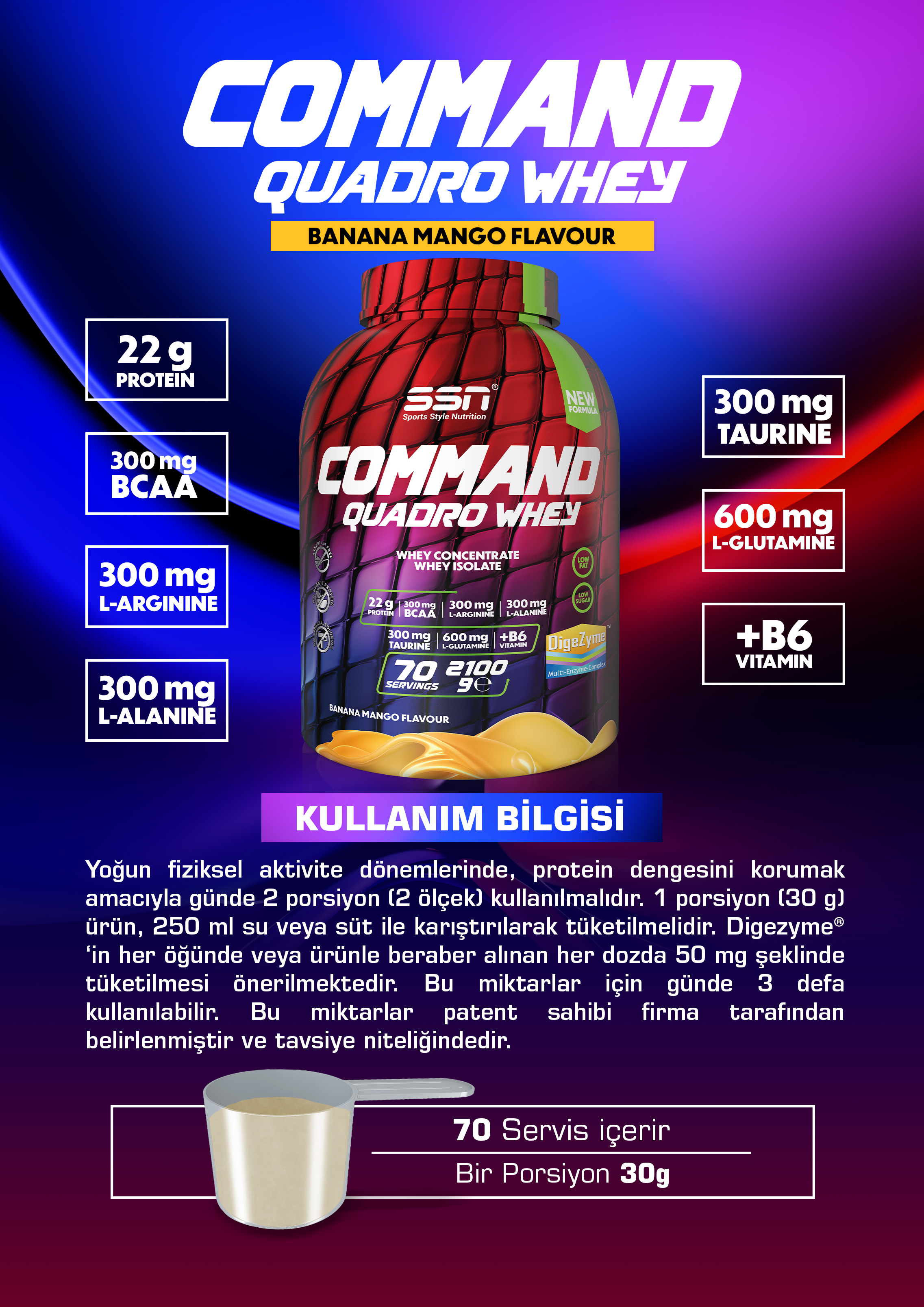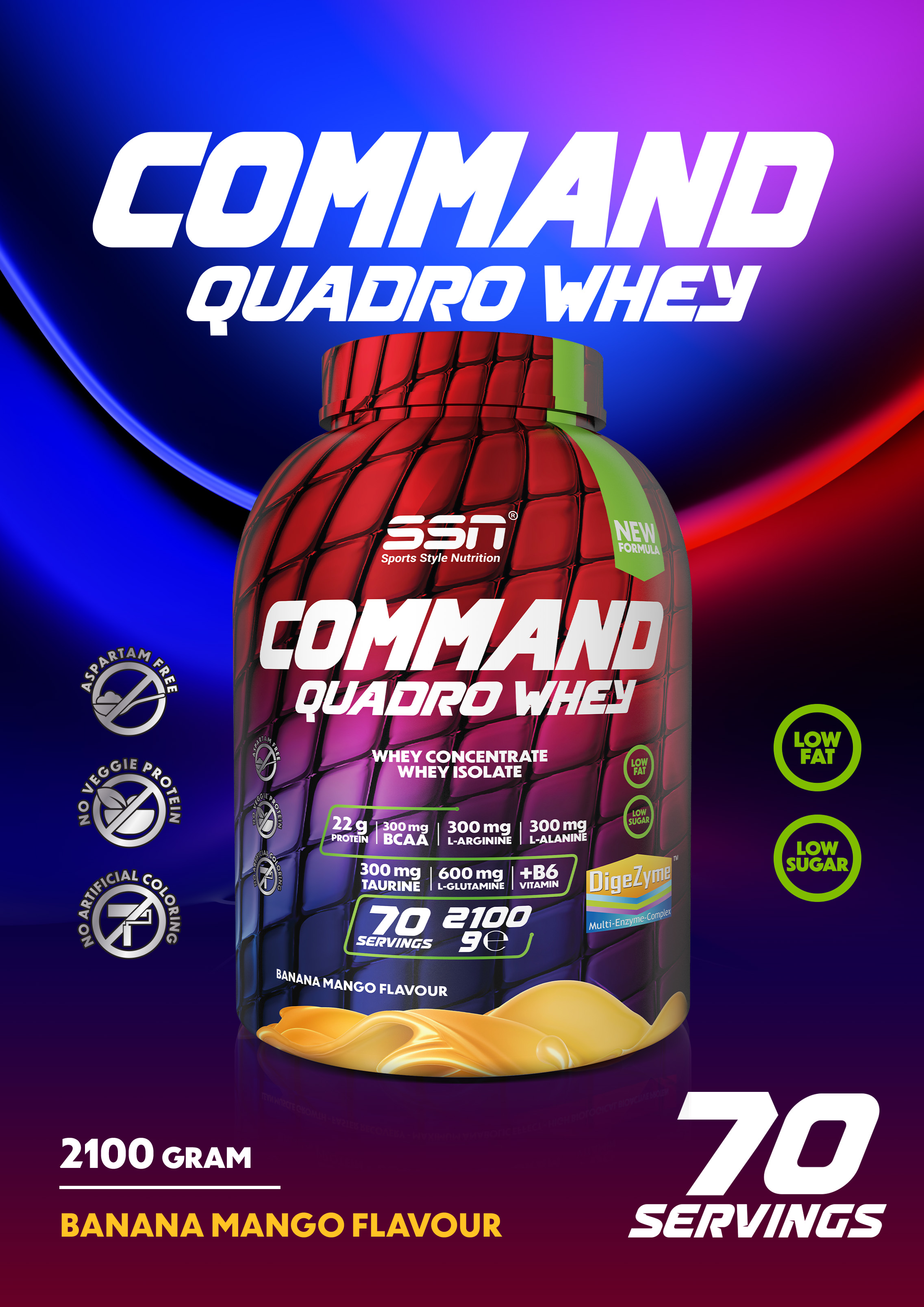 SSN Command Quadro Whey Protein 2100 Gram Muz Mango Aromalı