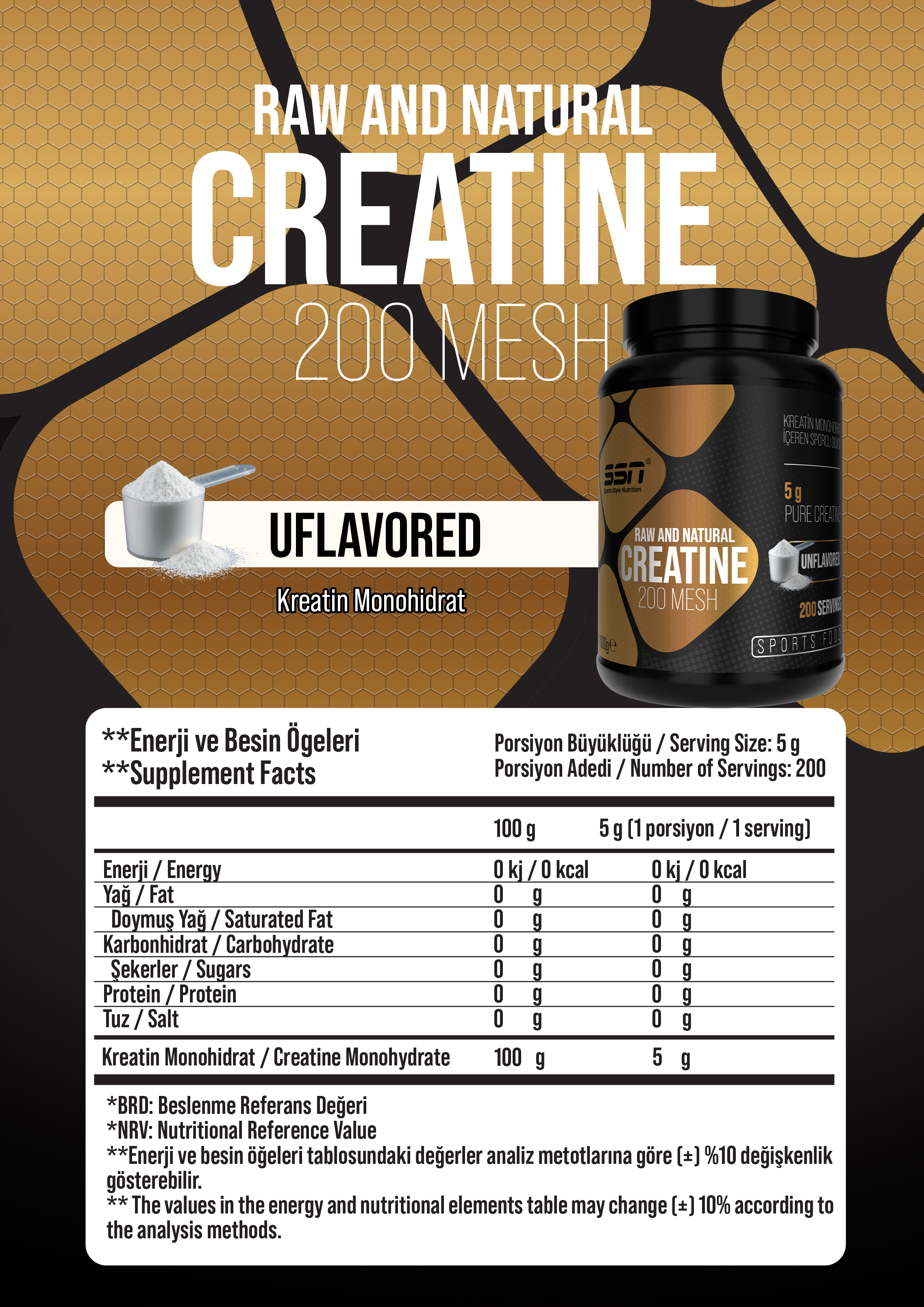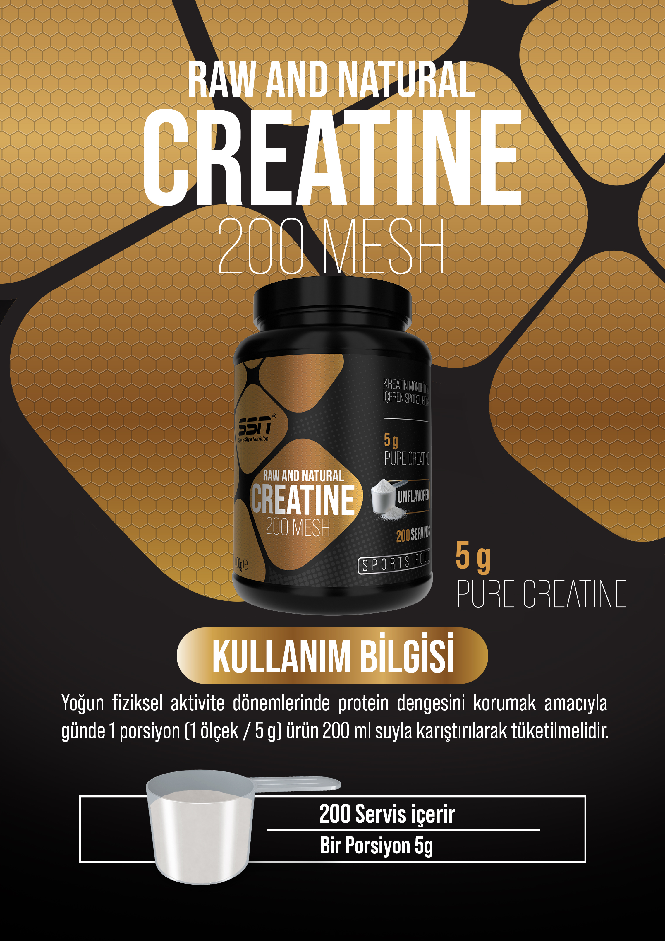 • Servis başına: 5G saf kreatin